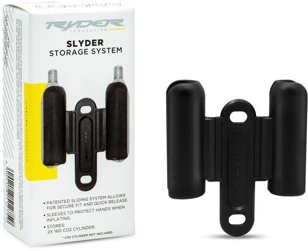 | Description | The Slyder Storage system provides a Co2 inflator to hand where ever your bike goes, securely and conveniently storing a 16g Co2 cartridge and Slugplug under your bottle cage Allows you to carry 16g Co2 cartridge with an inflation adapter fitted and a preloaded Slugplug for quick access when you get a puncture Sleeve prevents hands from freeze burn Versatile mounting to frame or seat post, using bottle bosses Co2 Cartridges not included |